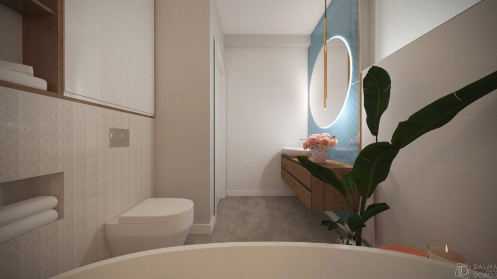 #designinterior #dalmadobosinteriors #designinteriorarad #interiordesign #dalmadesign #turquoise #nudecolor #lighting #novaluce #modern #brumataps #bluetile #bathroom #bathroomdesign #skandinav #designinteriorsatumare #3D#moderndesign #light
